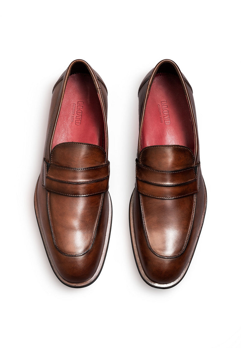 Catch the eye with the LLOYD slip-ons »SAGRES« made from brown smooth leather and a classic design. In these shoes, easy handling by simply slipping into them is a given. A wear-resistant rubber sole is used. This cushions the impact when walking while the leather of the inner sole offers good heat regulation. The elasticated band and the soft smooth leather upper ensure a classic, elegant look and quick putting on and taking off. These shoes are comfortable and breathable by use of the leather and textile lining.